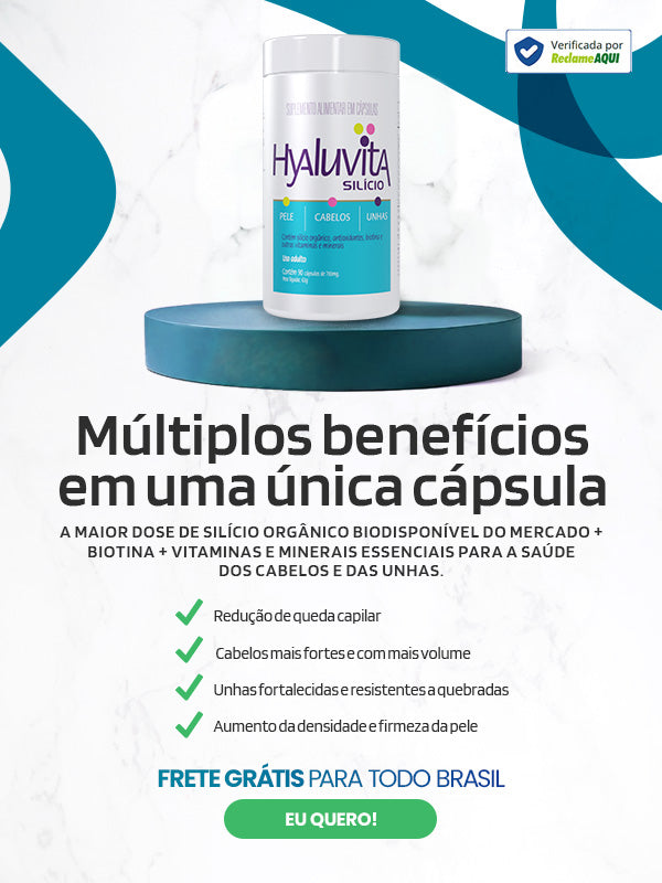 - Fortalecer cabelo e unhas e reduzir queda capilar: Hyaluvita Silício.