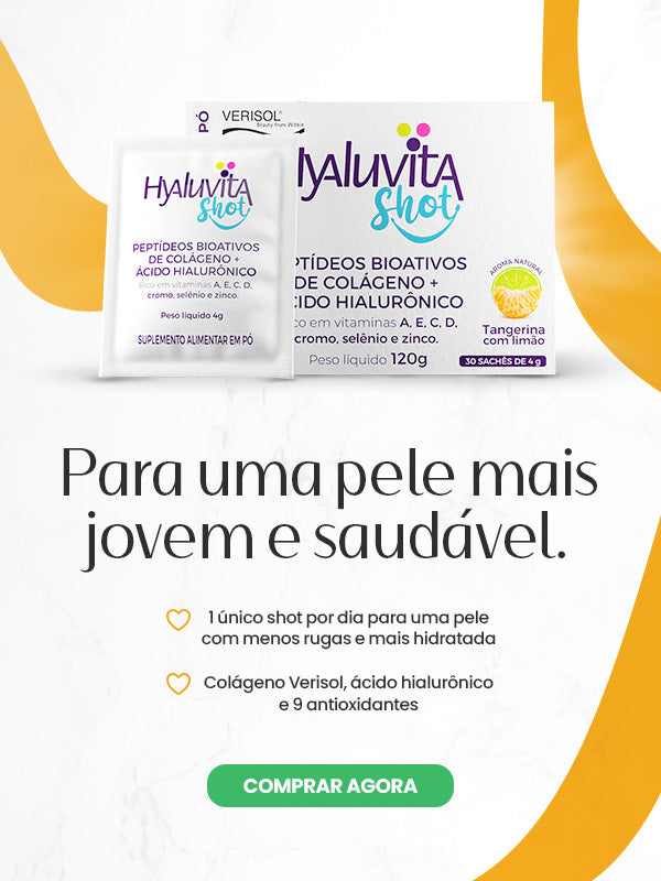 - Hyaluvita Shot: 1 sachê por dia diluído